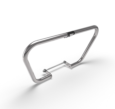 Go for bigger adventures with the added protection and unique angular styling of the Trapezium engine guard. Made from a 32mm steel tube, it comes with dual powder coating for corrosion resistance. It is precisely engineered to fit, and comes with contemporary Royal Enfield branding. Also available in silver.